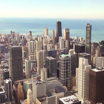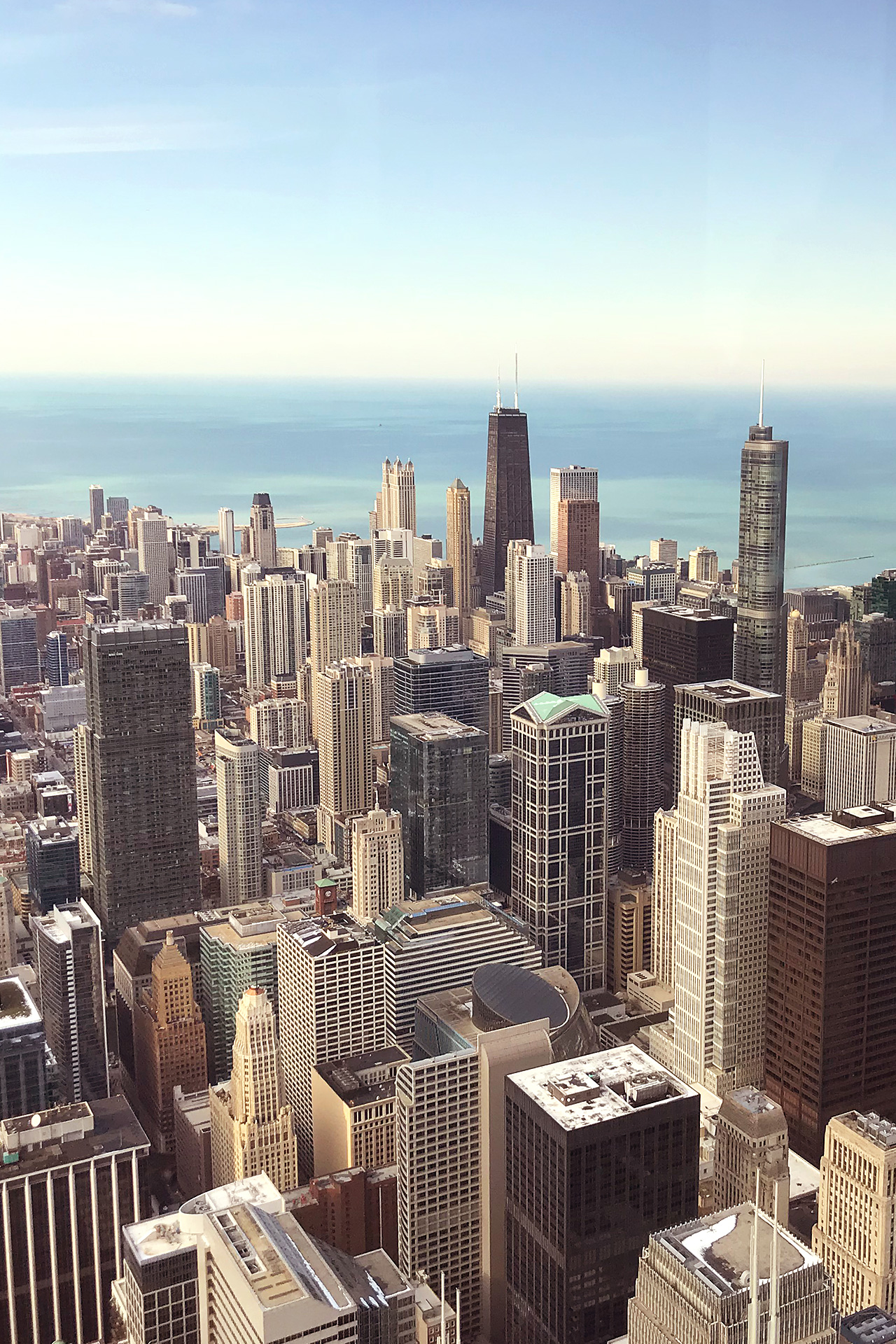 Der Weg von der Strandpromenade mitten in die „Windy City“ ist nur kurz. Innerhalb weniger Minuten ist man mittendrin in einer Stadt, die einen sofort in ihren Bann schlägt. Flanierend in den Straßenschluchten, gesäumt von hoch aufragenden Skyscratchern erlebt man das quirlige und vielvölkische Leben dieser Metropole hautnah. Zu bieten an Sehenswürdigkeiten und Unterhaltung hat die Großstadt im mittleren Westen jede Menge. New York mag zwar in der Summe mehr Wolkenkratzer aufweisen, aber Chicago ist die eigentliche Geburtsstadt der Wolkenkratzer. Mit dem Willis-Tower (dem ehemaligen Sears-Tower) mit 527 Meter sowie dem 875 North Michigan Avenue (ehemals John-Hancock-Center) mit seinen beiden Antennen mit 457 Metern nennt Chicago zwei der beeindruckendsten freistehenden Gebäude der Welt sein eigen. Beide Hochhausgiganten bieten auf ihrer höchsten Plattform schwindelerregende Erlebnisse: Während man im Willis-Tower auf einer frei schwebenden durchsichtigen Glasscheibe stehend oder sitzend in den „Abgrund“ blicken kann, ist der Höhenrausch im 875 North Michigan Avenue ein ganz anderer: Während man sich beidhändig an zwei Eisenstangen festhält kippen die Fenster im Dreier-Intervall nach vorne und bringen die zahlreichen Touristen jeweils in eine „bedrohliche Schieflage“. Beide Attraktionen sind eher nichts für zarte Gemüter.