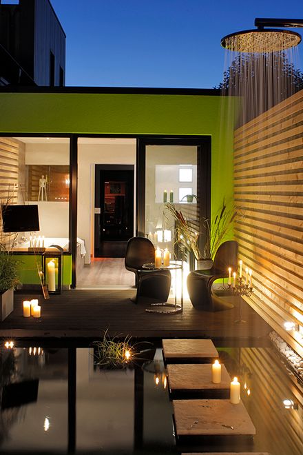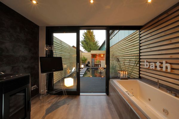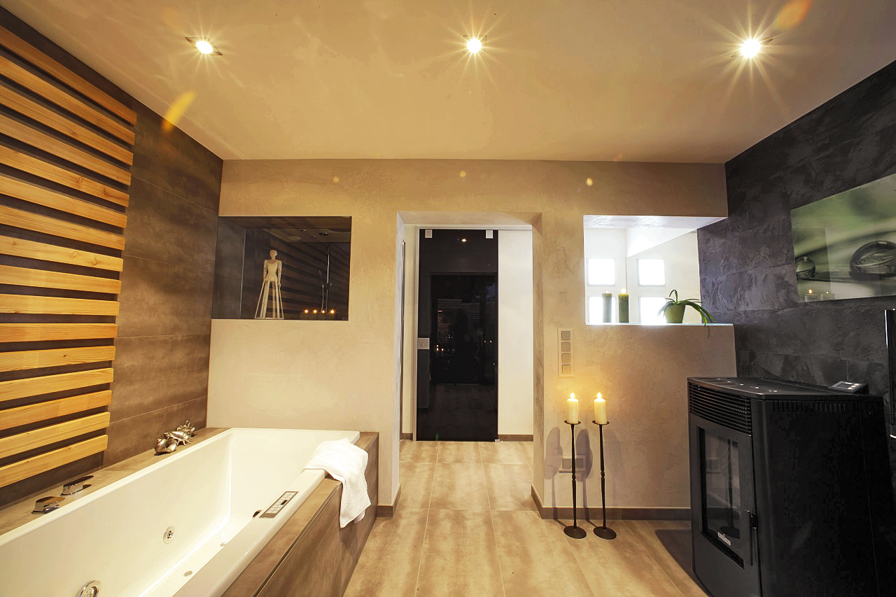 Eigentlich ist es doch paradox, dass ausgerechnet der intimste Bereich einer Wohnung, in dem der Mensch totale Privatsphäre genießen sollte, oft so stiefmütterlich behandelt wird – altmodische Fliesen, unbequeme oder für ältere Menschen sogar gefährliche Wannen, schlecht regulierbare Armaturen und ungünstige Beleuchtung tragen weder zu einem gelungenen Start in den Tag noch zu einem entspannten Rückzug vom Alltag bei – da hilft nicht mal das Quietschentchen auf dem Wannenrand. Die gelben Enten führen bei Reineck übrigens ein Luxusdasein: Sie sind in einer Edelwanne mit Whirl- und Soundtechnik zu finden. Echte Kois tummeln sich dagegen in dem kleinen Badeteich im Freien, der mit Duschen und Sauna Ferienstimmung pur weckt.